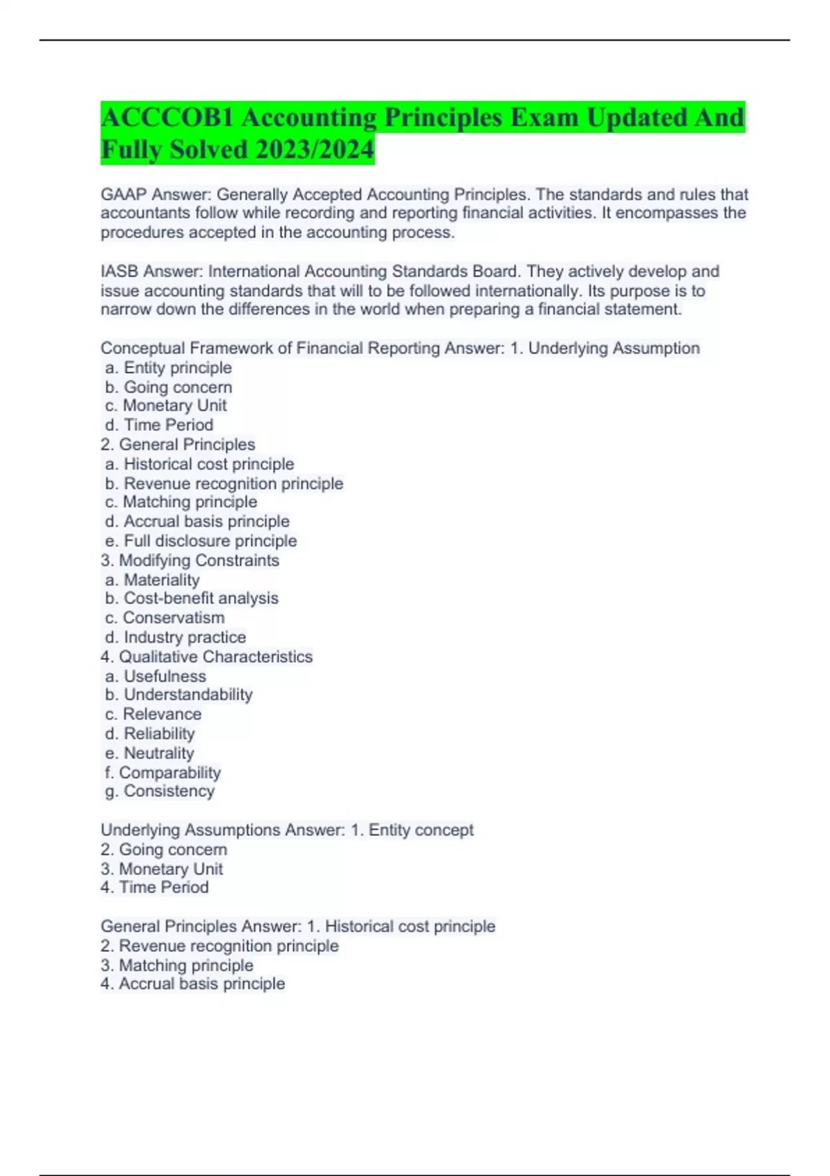 ACCCOB1 Accounting Principles Exam Updated And Fully Solved 2023
